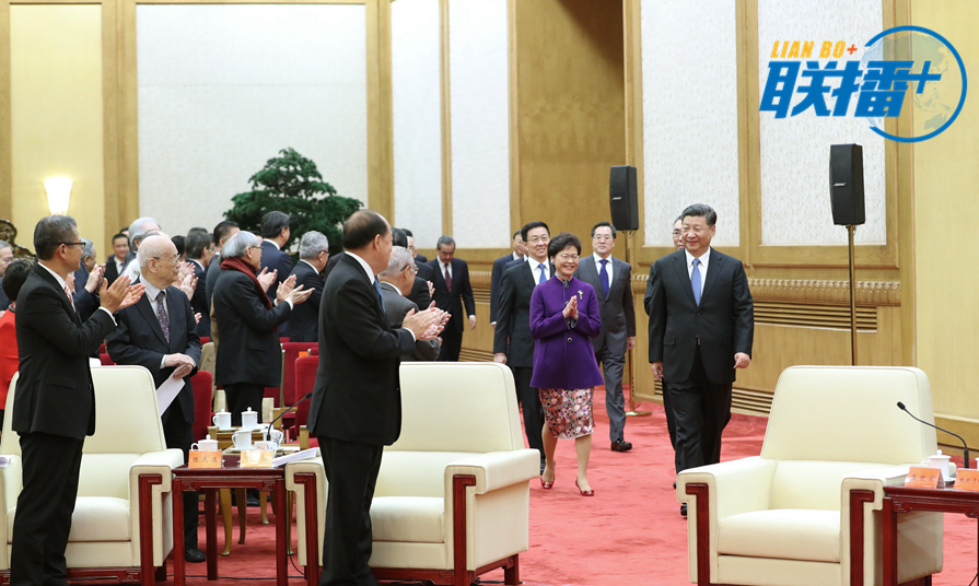 会见中,香港特别行政区行政长官林郑月娥、澳门特别行政区行政长官崔世安以及部分访问团成员先后发言,表达了对改革开放道路、“一国两制”的高度认同。