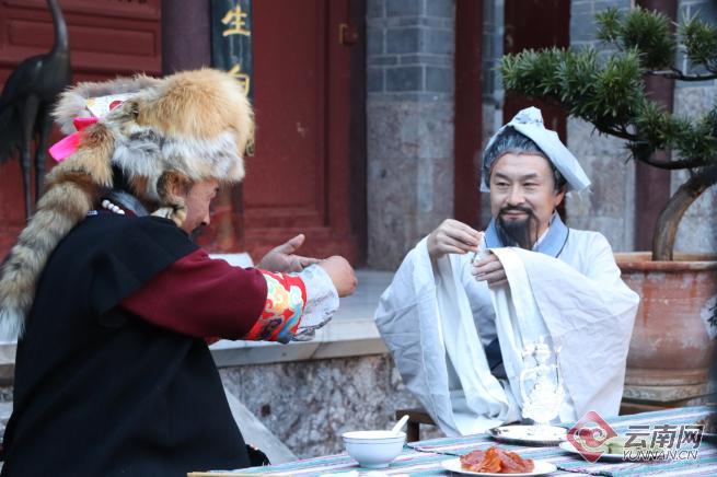 当天,20名演员身着古代服饰和纳西族服饰参与拍摄。该戏份将“木增土司精心准备80道丰盛菜肴,盛情款待明朝地理学家、旅行家、文学家徐霞客的历史故事”进行了现场还原再现,不少游客市民驻足拍摄现场,用手机记录下了精彩瞬间。
