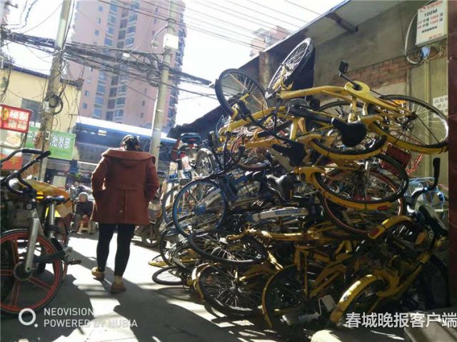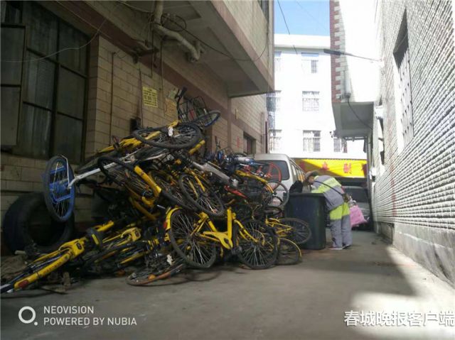 3米高共享单车堆子堵巷口 市民盼治理