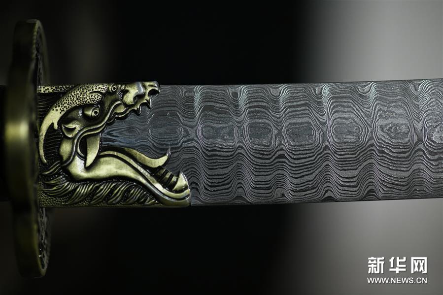 这是11月14日在石家庄市行唐县铁匠庄村拍摄的李住军锻造的工艺剑成品局部。 河北省石家庄市行唐县铁匠庄村以打铁远近闻名,几百年来,这门技艺在铁匠庄村传承不绝。 今年47岁的李住军是村里的代表性打铁匠人,他师承父亲,凭着对传统技艺的热爱,钻研摸索十余载,掌握了百炼花纹钢锻造技艺,他所掌握的传统工艺剑锻造技艺被评为石家庄市级非物质文化遗产。 近年来,李住军坚持创新,打造出蚕丝纹、流水纹等十余种精美花纹图案,这种经反复折叠锻打而在表面上所浮现的肌理纹路,增强了工艺剑美感,提升了工艺品质,成为当地一张独特的非遗文化名片。 新华社发(陈其保摄)