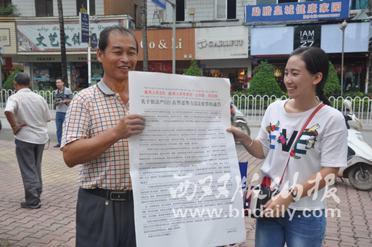 强化宣传造声势,为专项斗争营造浓郁氛围。县委政法委、县委宣传部联合制定《关于深入开展扫黑除恶专项斗争宣传教育活动的通知》《关于进一步做好扫黑除恶专项斗争宣传工作的通知》《关于〈勐腊县扫黑除恶专项斗争督导宣传报道工作方案〉的通知》,向社会公布4部举报电话,设置54个举报邮箱。截至11月7日,累计张贴通告8515份、公告27575份、海报3000余份,悬挂横幅710条,集中宣传985场次,发放相关书籍9200册。使用电子屏宣传379块,制作大型户外广告牌2块。通过县委宣传部“勐腊发布”、县委政法委“边境法声”等微信公众号宣传2028条。勐腊电视台播放相关新闻2篇、公益广告3条,总时长481分06秒。与《西双版纳报》联办“法治勐腊、平安茶乡”专栏,刊发相关消息35条,勐腊手机报2次推送扫黑除恶知识10条。组织行业场所填写摸排表318份,签订责任书104份,覆盖全县各社区和村寨。