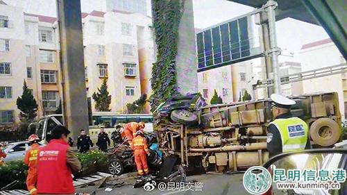 事故发生后,二环云山路上口暂时封闭,周边道路通行也受到影响。