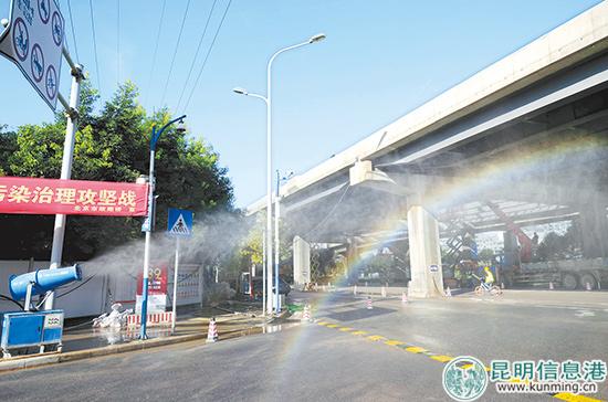 昆明南二环工程建设项目经理高维兵介绍,工程在建设之初,就按照昆明市的要求,把安全生产文明施工放到了与工程质量、施工进度同等重要的地位。开工之前,全面落实环保方案和扬尘治理措施,并组建2个专业的环保小分队进行扬尘防控,高峰期达到120余人。