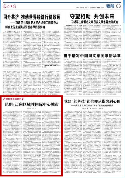6686体育讯 11月18日,光明日报03版以《昆明:迈向区域性国际中心城市》为题,报道了改革开放40年来,昆明逐步由西南边陲城市成为西部地区重要中心城市之一。以下是报道全文: