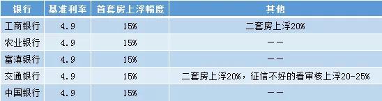 在云南房网调查的几家银行中,工商银行首套房贷款利率上浮15%,实际执行利率为5.635%;二套房的房贷利率上浮20%,利率为5.88%。农业银行、富滇银行、中国银行的首套房贷款利率均上浮15%。