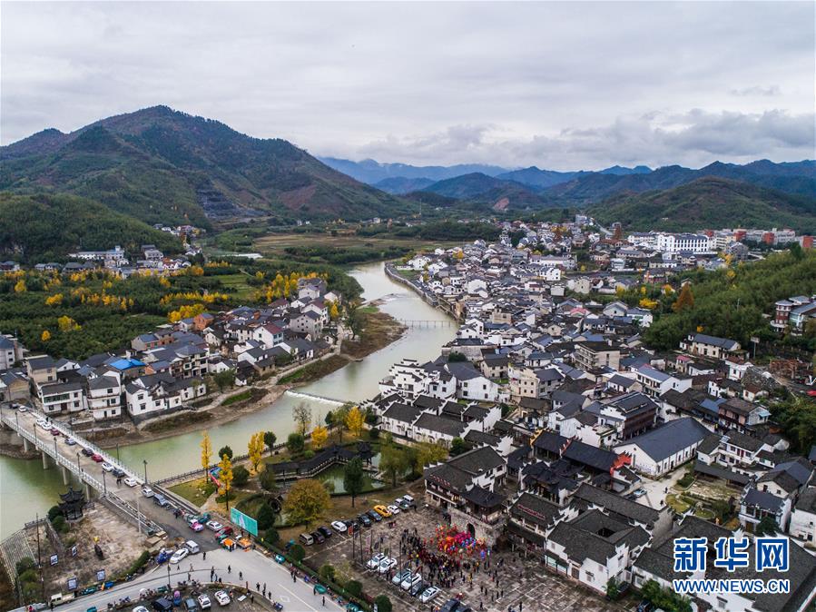 11月19日无人机航拍的河桥古镇。 当日,浙江省杭州市临安区河桥镇举办一场集传统文化展示、民俗表演、美食品鉴等于一体的传统庙会,吸引了众多游客和当地居民前来感受热闹气氛。 河桥古镇距今已有一千三百余年历史。本次河桥古镇通过举办传统庙会活动,展现当地悠久的民俗文化风情,营造古镇良好的文化氛围,树立河桥文化旅游品牌形象,提升知名度,助推当地乡村旅游发展。新华社 记者徐昱/摄