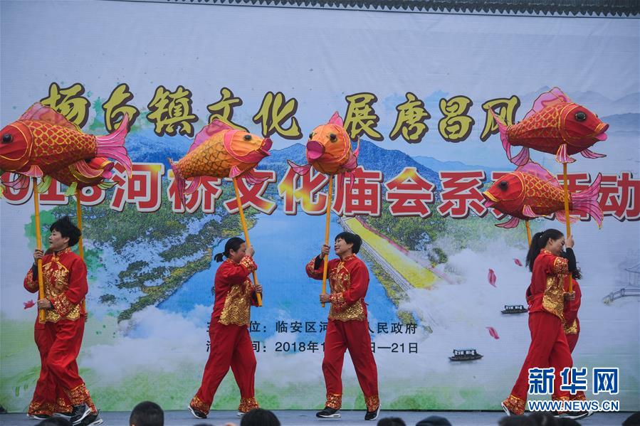 11月19日,河桥古镇举行传统表演。 当日,浙江省杭州市临安区河桥镇举办一场集传统文化展示、民俗表演、美食品鉴等于一体的传统庙会,吸引了众多游客和当地居民前来感受热闹气氛。 河桥古镇距今已有一千三百余年历史。本次河桥古镇通过举办传统庙会活动,展现当地悠久的民俗文化风情,营造古镇良好的文化氛围,树立河桥文化旅游品牌形象,提升知名度,助推当地乡村旅游发展。新华社 记者徐昱/摄