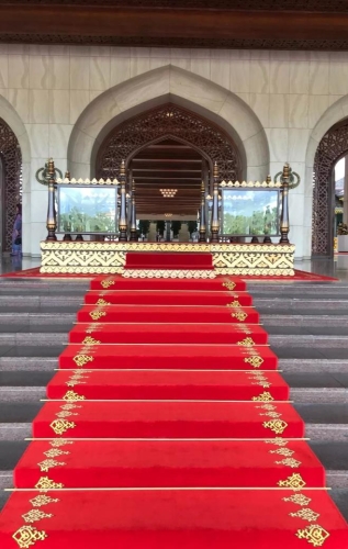 从欢迎仪式的现场你可能注意到了,文莱的女士戴着彩色头巾,男士戴着黑色的宋谷帽。因为文莱是伊斯兰教国家,头巾和宋谷帽是民众参加正式活动的着装标准。
