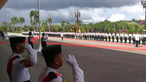 19号上午11点左右,习近平在努洛伊曼王宫出席了文莱苏丹哈桑纳尔举行的欢迎仪式。