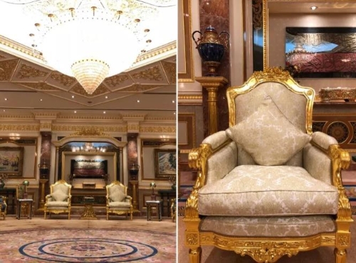 △习近平就是在这个房间同文莱王室成员交谈。右为习近平的坐席。(央视记者马亚阳拍摄)