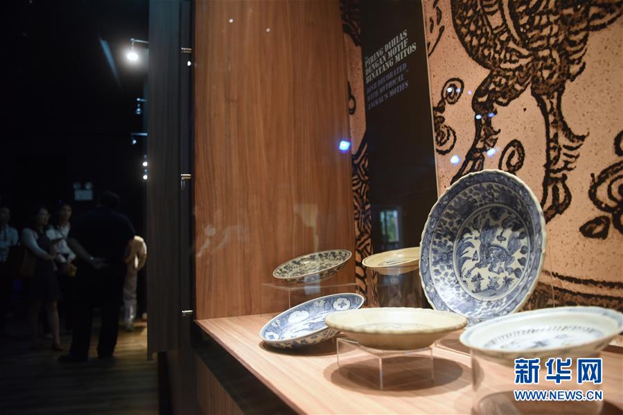 这是11月16日在文莱首都斯里巴加湾市的海事博物馆拍摄的来自中国的青花瓷。新华社发(王申摄)