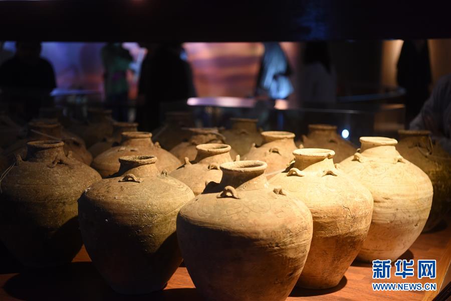这是11月16日在文莱首都斯里巴加湾市的海事博物馆拍摄的陶罐。新华社发(王申摄)
