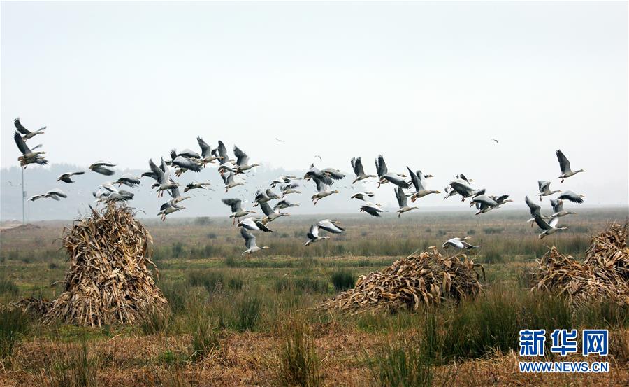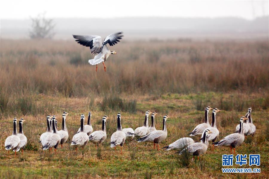 这是11月17日在草海国家级自然保护区拍摄的越冬候鸟。新华社发(何欢 摄)