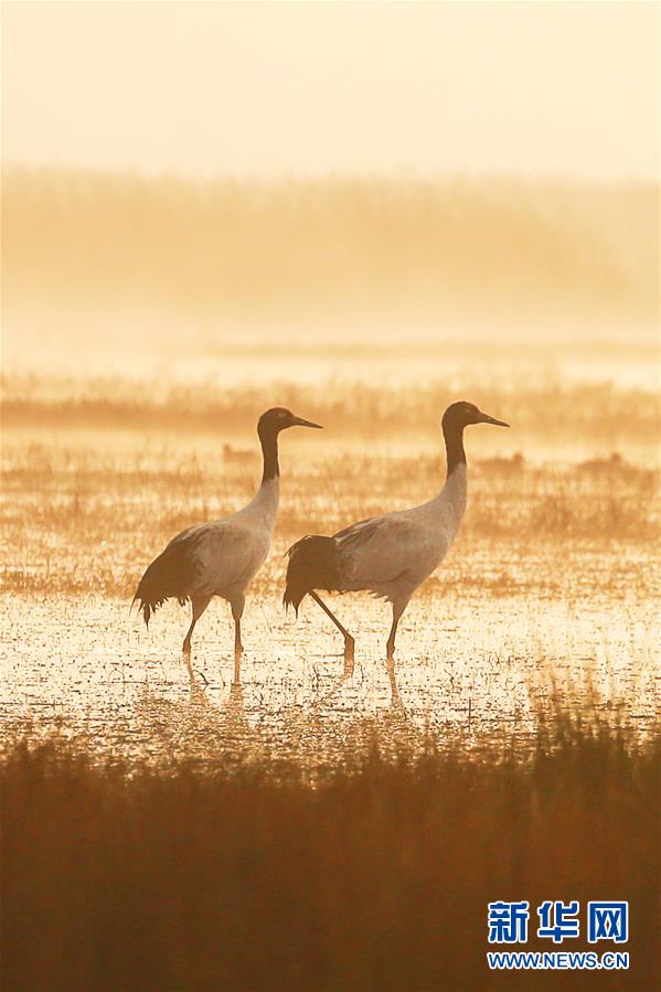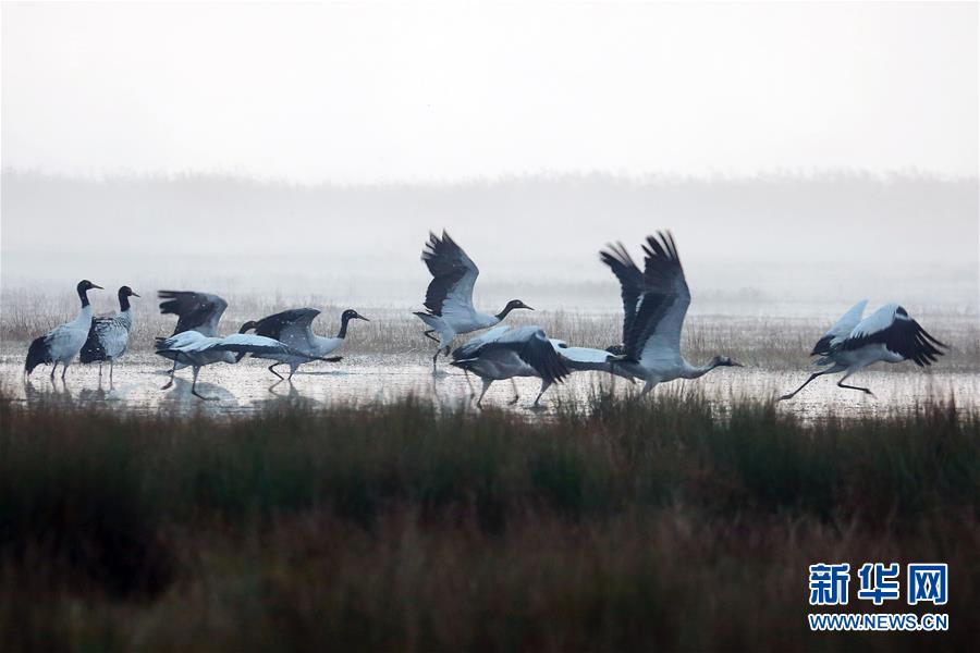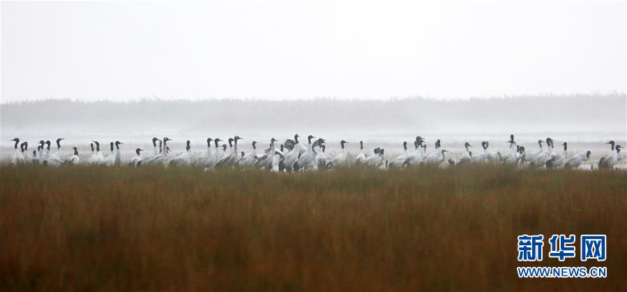 这是11月17日在草海国家级自然保护区拍摄的黑颈鹤。新华社发(王纯亮 摄)