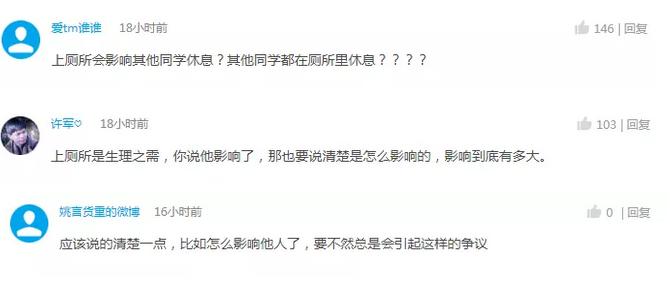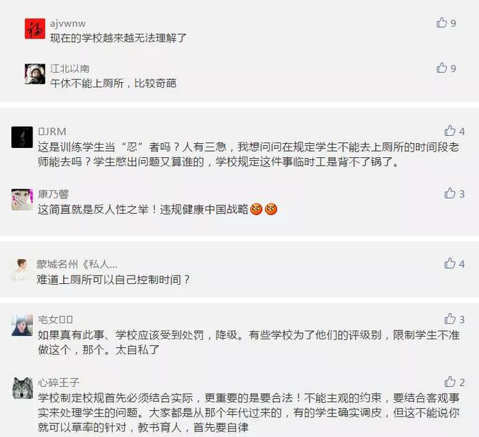 网友对学校“午休不能上厕所”的行为表示不理解: