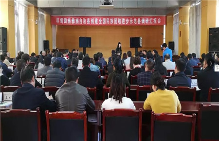 汇报会上,李钟协一行观看了寻甸县创建全国民族团结进步示范县宣传片,何健升汇报了寻甸县创建全国民族团结进步示范县工作情况。