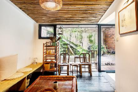 成都人的慢生活深入在每个人的骨子里,体现在生活的方方面面。这座悠闲的竹林传统庭院,爱彼迎房东给它取名为“竹涧”。屋内的一切设施几乎都由竹子制成,随处可见的桌椅板凳、竹灯、竹垫,甚至还有竹子制成的房顶,一切都是自然原本的样子,素雅而清新,让人一走进便能沉静下来。坐在屋内,看着眼前的一桌一椅,仿佛耳边能听到有潺潺溪水流过。奇妙的是,走出这里,会发现它其实坐落在热闹的玉林,这里是成都充满了烟火气息的市井之地,遍地的吃喝玩乐,酒吧众多,时尚小店林立,充满着成都独有的舒适而温暖的气息。