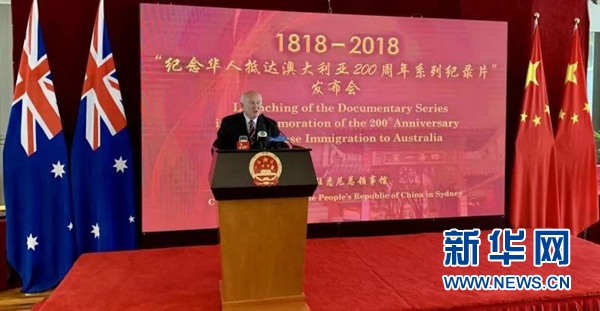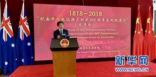 中国驻悉尼总领馆20日下午举办“纪念华人抵达澳大利亚200周年系列纪录片”发布会。中国驻悉尼总领事顾小杰致辞。新华网发
