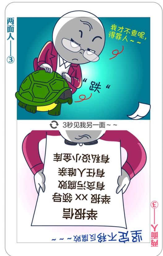 习近平总书记多次强调:“坚决反对搞两面派、做两面人。”大量案件表明,党内有一些人在这方面问题很突出。我们要给政治上蜕变的两面人画个像,摆摆他们的一些表现。今天推出第三期:“有的口头上表态坚定不移反腐败,背地里对涉及领导干部的问题线索不追究、不报告。