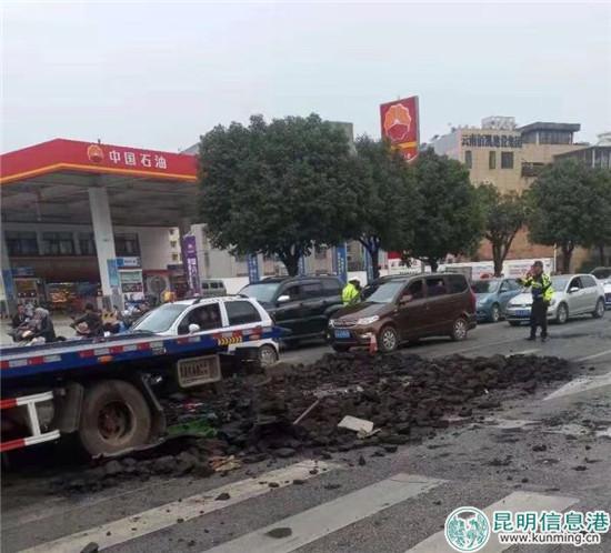 事故发生后,五华区环卫处积极响五华区网格指挥中心应急联动工作机制,立即组织北控公司工作人员,车辆赶往现场协助交警部门开展应急处置工作,清理散落地面的煤炭和污染,从早上7点至上午10点30分左右,环卫工人们才将煤炭全部清理完毕并将路面冲洗干净,交通秩序恢复正常。