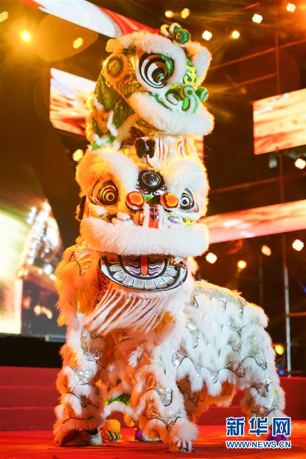 11月22日,演员在《鼓舞的世界》中舞狮。新华社 记者张笑宇/摄