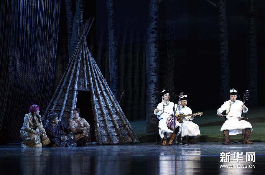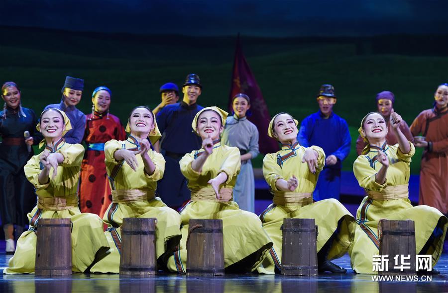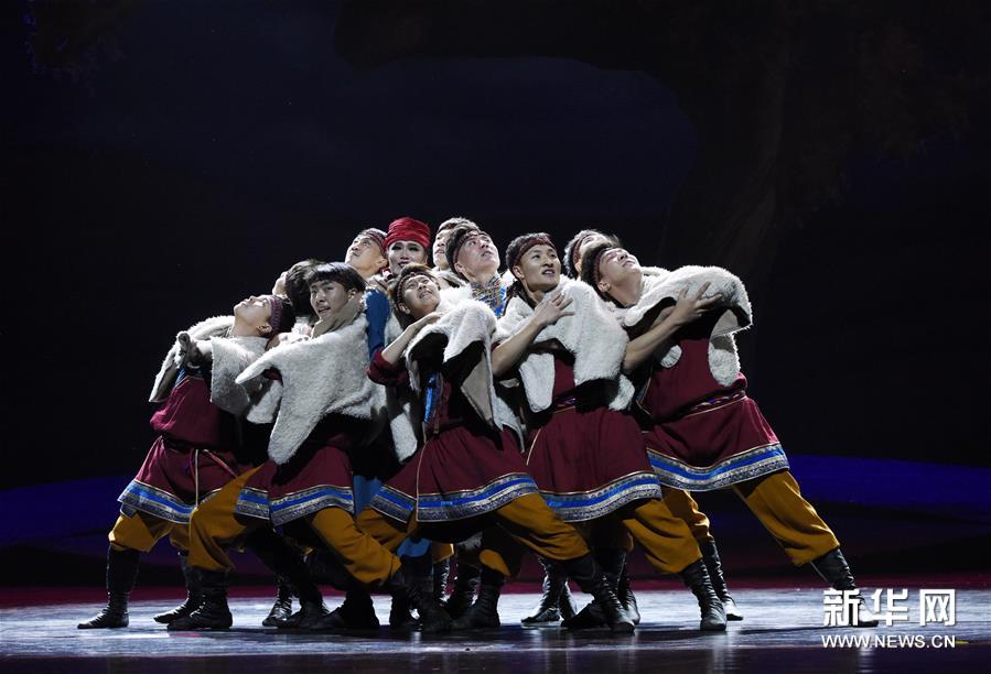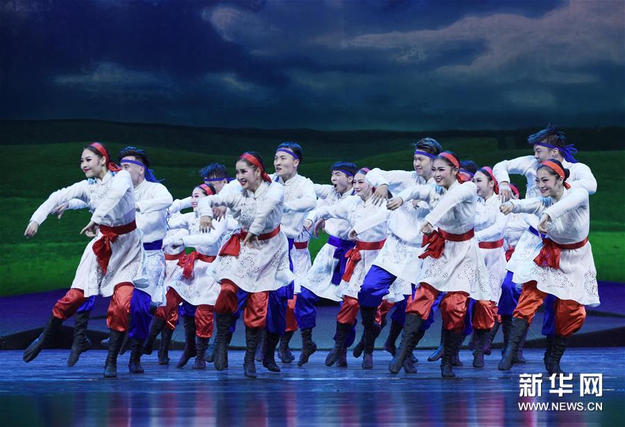 11月21日,演员在情景歌舞《草原上的乌兰牧骑》中表演舞蹈。 当晚,由内蒙古民族艺术剧院直属乌兰牧骑创排的民族情景歌舞《草原上的乌兰牧骑》在呼和浩特市上演。《草原上的乌兰牧骑》集歌唱、舞蹈、朗诵等艺术表现形式于一体,讲述了乌兰牧骑为农牧民送欢乐的感人故事。(新华社 王正)