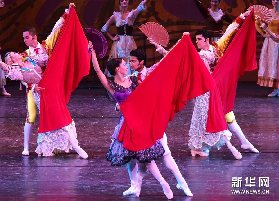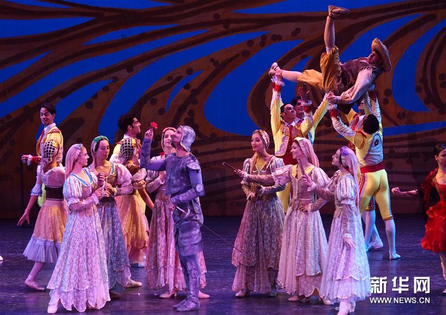 11月22日晚,古巴国家芭蕾舞剧团在上海大剧院演出芭蕾舞剧《堂·吉诃德》。 当日,古巴国家芭蕾舞团在上海大剧院以一部融合了古巴风情与传统舞剧风格的经典芭蕾舞剧《堂·吉诃德》,压轴2018中国上海国际艺术节。(新华社 记者任珑)