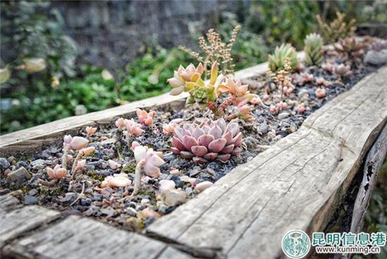 他们在树桩里养的多肉。记者刘雄斌/摄