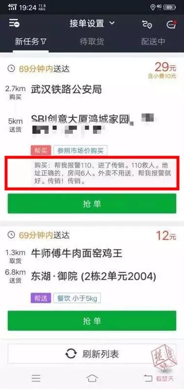 “送货地点:创意大厦鸿城家园”23日晚7时24分,某众包平台上出现一条接单信息,信息上点单的客户还附了一段话: