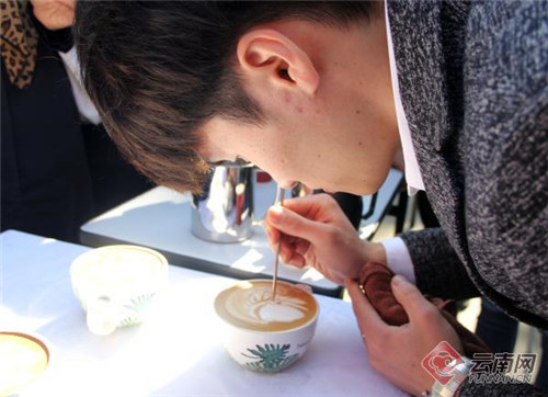 最引人注目的是咖啡师职业技能大赛获奖选手技能展示环节,只见一杯纯色的咖啡在咖啡师手里轻轻一拉、一提、一晃动,造型各异的图案便呈现在眼前。经过咖啡师拉花后的每一杯咖啡,精致动人,惹得观众们的连连称赞。