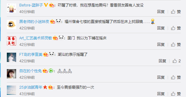 地震造成福建全省有感,其中厦门、漳州等地震感强烈。广东和浙江等地亦有震感报告。网友纷纷表示有震感。