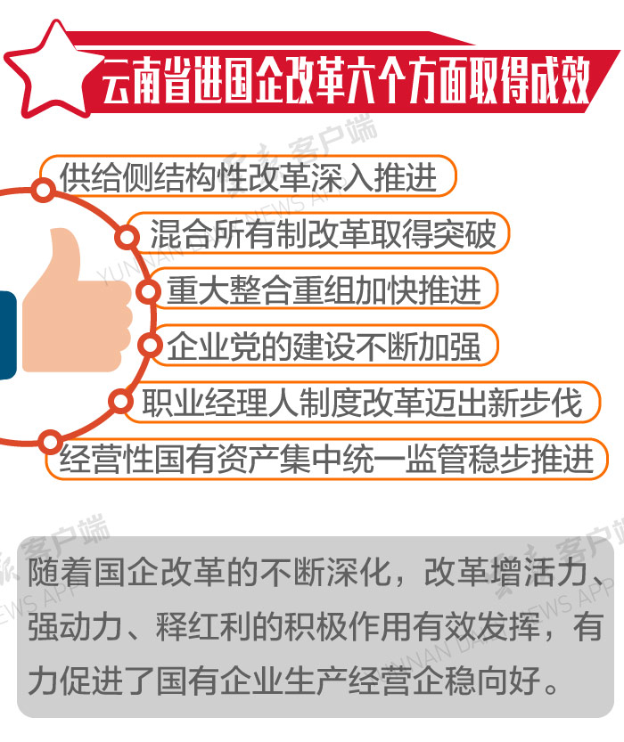 记者从11月21日在昆召开的全省深化国有企业改革大会上获悉,近年来,省委、省政府把国企改革作为重点工作,认真贯彻党中央关于国企改革的决策部署,紧密结合云南实际,出台了《中共云南省委云南省人民政府关于全面深化国有企业改革的意见》和47个配套文件,启动实施国企改革攻坚战,推动国企改革不断取得新进展新成效,有力推动了全省经济发展的质量变革、效率变革、动力变革,为推动我省经济实现高质量跨越式发展作出了重要贡献。