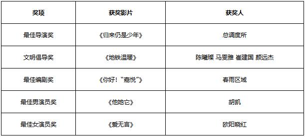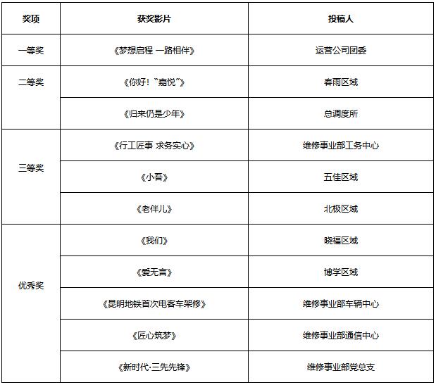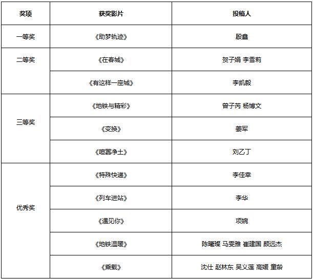 附件:“第四届昆明地铁微电影大赛”获奖作品名单