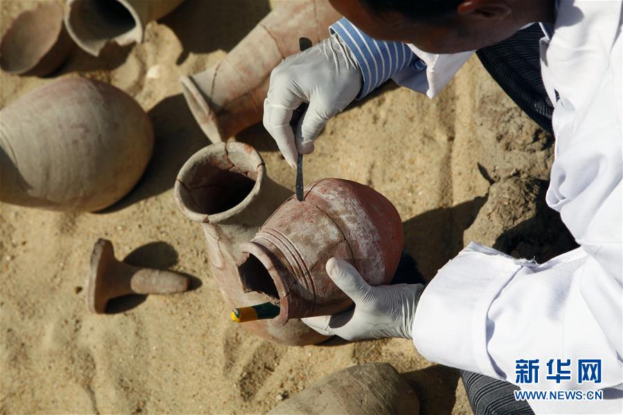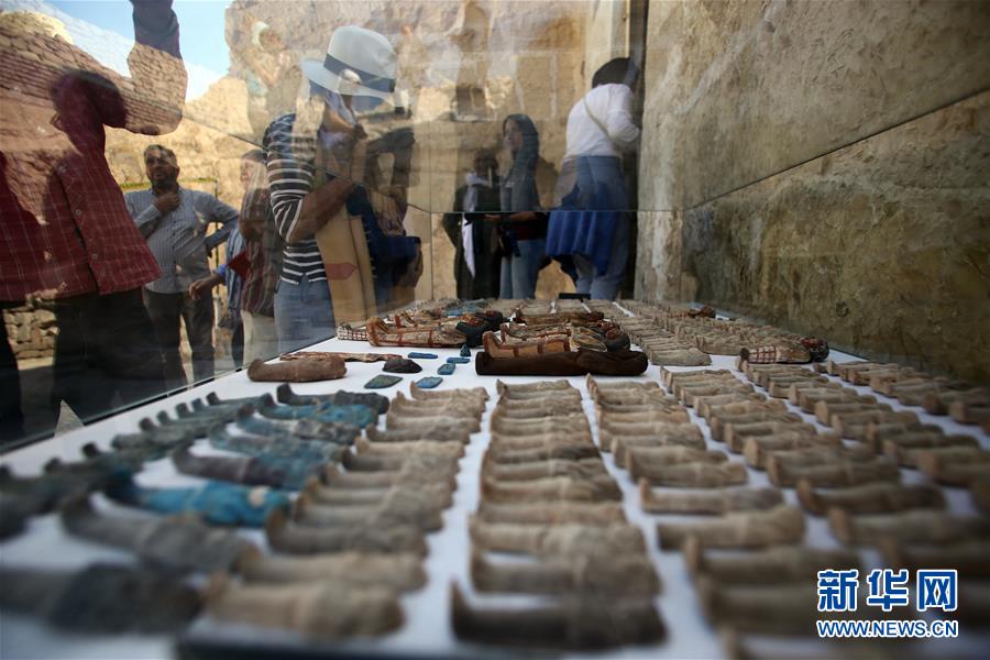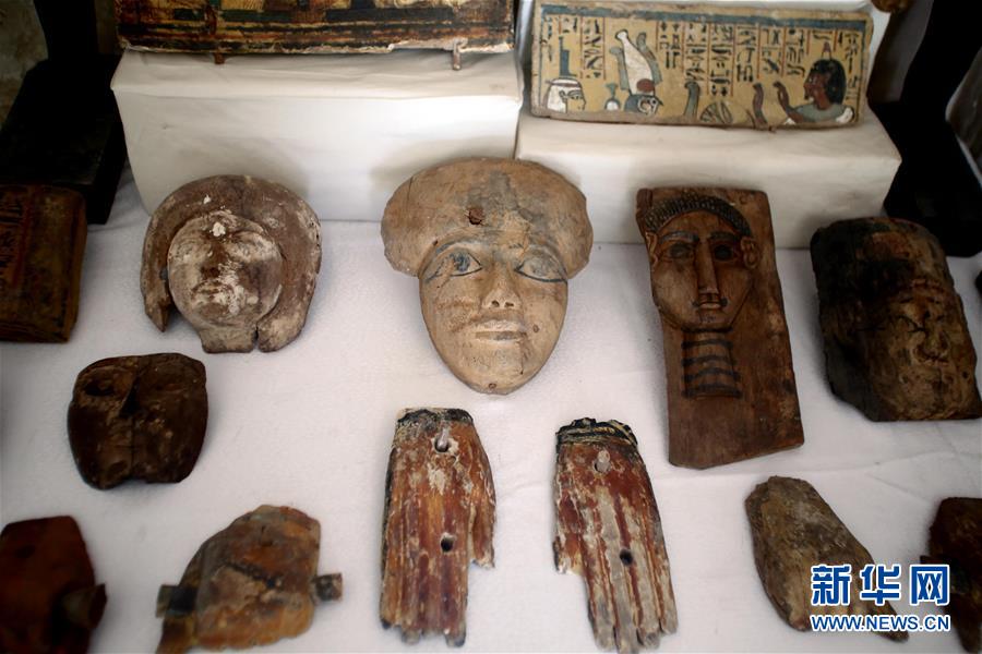 这是在埃及卢克索省尼罗河西岸新发现的古埃及贵族墓葬中出土的文物(11月24日摄)。(新华社 艾哈迈德·戈马摄)