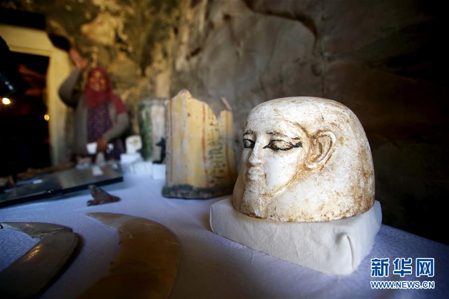 这是在埃及卢克索省尼罗河西岸新发现的古埃及贵族墓葬中出土的文物(11月24日摄)。