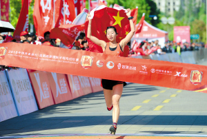 2017年上合昆马云南选手潘银丽夺得女子组冠军。记者杜文蕾/摄
