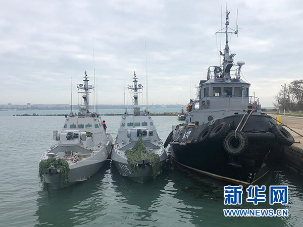 这是11月26日拍摄的被俄方扣留的乌克兰海军3艘船只。 新华社/卫星社