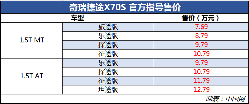 26日晚,奇瑞捷途X70S正式上市,售价区间为7.69-12.79万元。新车定位于中型SUV,共推出8款车型,全系车型均搭载1.5T发动机,传动系统匹配5MT或8AT变速箱。