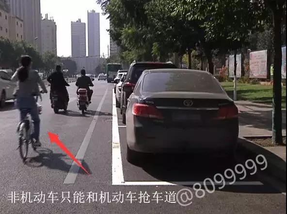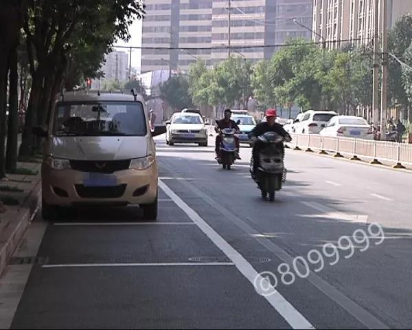 上午,记者在万宏路看到,双向四车道的内侧,都划上了白色的停车泊位线,几乎占据了原本非机动车道全部的位置,电动车和自行车只能从外侧机动车道上借道而行。