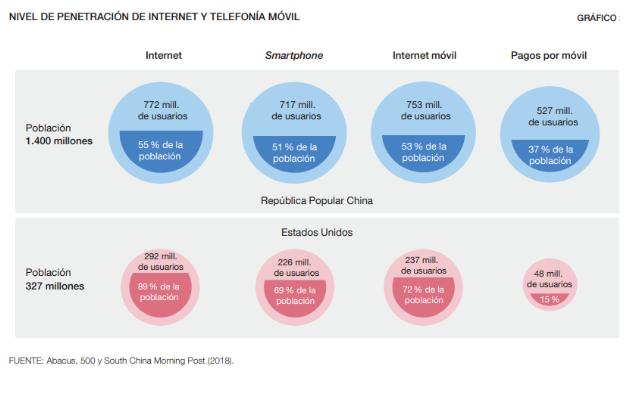 中国与美国移动端网购消费数据对比。图片来源:西班牙《企业家报》网站截图