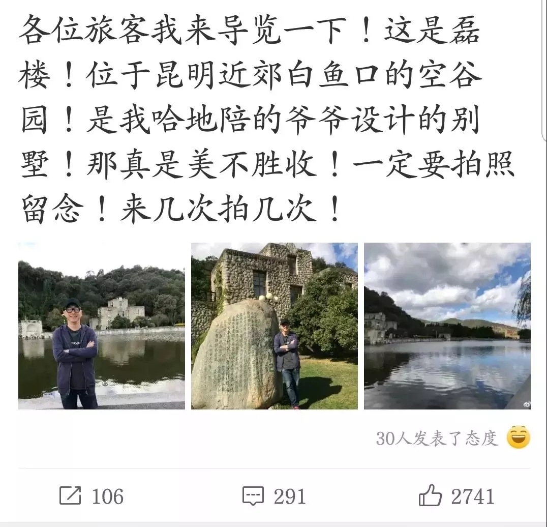 之后,庾澄庆又晒出了参观“庾园”时的照片,而且,还炫耀自己“逃票”3块。