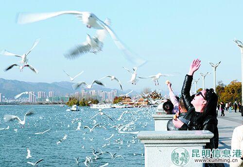 红嘴鸥吸引了不少游客。记者李海曦摄