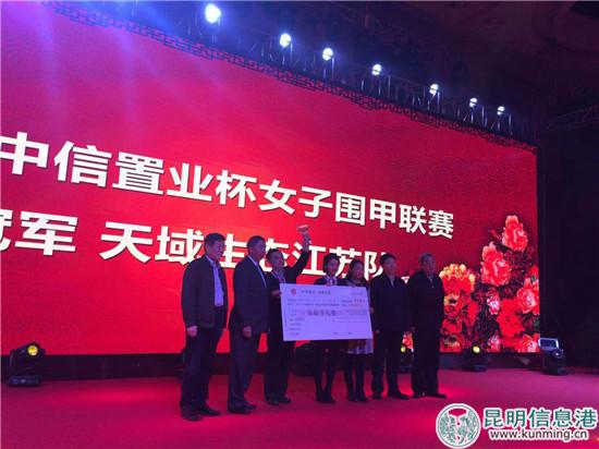 6686体育 实习记者周硕 11月28日晚,第六届中信置业杯中国女子围棋甲级联赛在云南省昆明市官渡区世纪金源大酒店举行了闭幕仪式,天域生态江苏队实现六连冠,美女棋手黑嘉嘉七段领衔的厦门观音山队获得亚军,传奇“魔女”芮乃伟九段率领的上海中环集团队荣获季军。闭幕仪式上举行了颁奖仪式,於之莹、周泓余、方若曦还分别获得优秀棋手奖,最佳进步奖,最多胜局奖,最佳新秀奖。