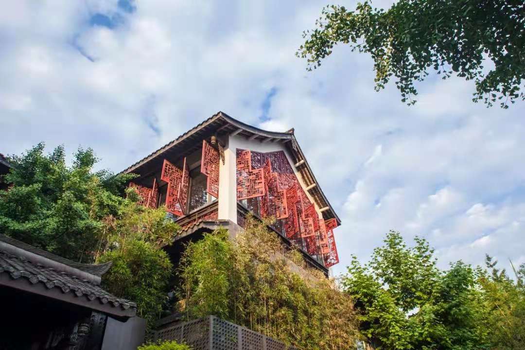 钓鱼台精品酒店的故宫红中式窗棂成为宽窄巷子的标志物之一