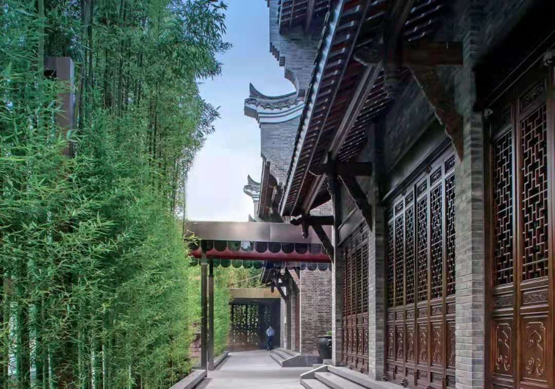在宽窄巷子,走过一个个兼具川西民居与北方西合院特点的古建筑,你会发现每家每户的院门以不同的面貌风格吸引着人们的目光,而进入院落,则是古典与现代的结合,别有洞天。例如被法国国宝级设计师Bruno Moinard以优雅的法式风格包装融合而成的成都钓鱼台精品酒店,门口外围以层层竹子环绕,门内青黛瓦墙,水声轻流,营造着世人皆闹我独静的城市情怀。