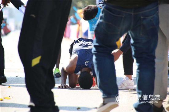 来自非洲肯尼亚的选手EVANS NYAKAMBA MAYAKA在男子半程马拉松比赛中,领先冲刺获得半程男子组冠军。在他的脸上,洋溢着的是自信是兴奋,是胜利之后的喜悦。记者甘凌菲/摄