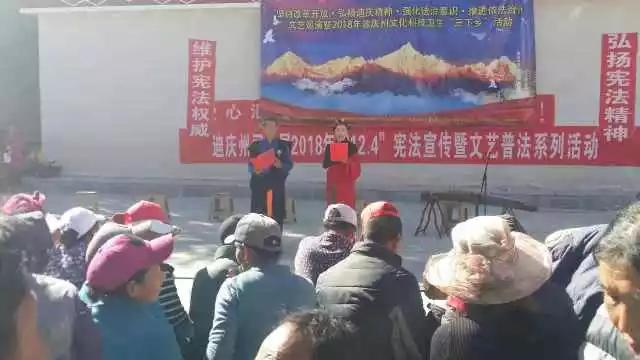11月14日,受白格堰塞湖泄洪影响,迪庆州德钦县拖顶乡、霞若乡对外通道拖顶至其宗公路和两座跨江桥被洪水冲毁。11月29日下午,迪庆州2018年“12·4”宪法宣传暨文化科技卫生“三下乡”第一巡演组全体成员完成了攀夭格乡的演出后,向德钦县拖顶乡进发。