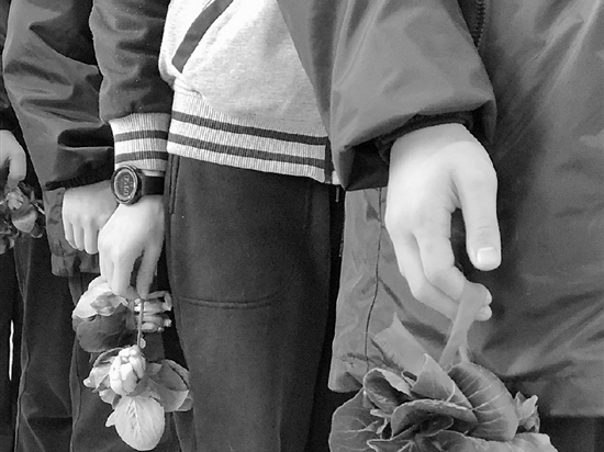 这次的表彰,40名学生每人拿到两棵青菜,用红绳捆住提在手里,是名副其实的“喜提”。