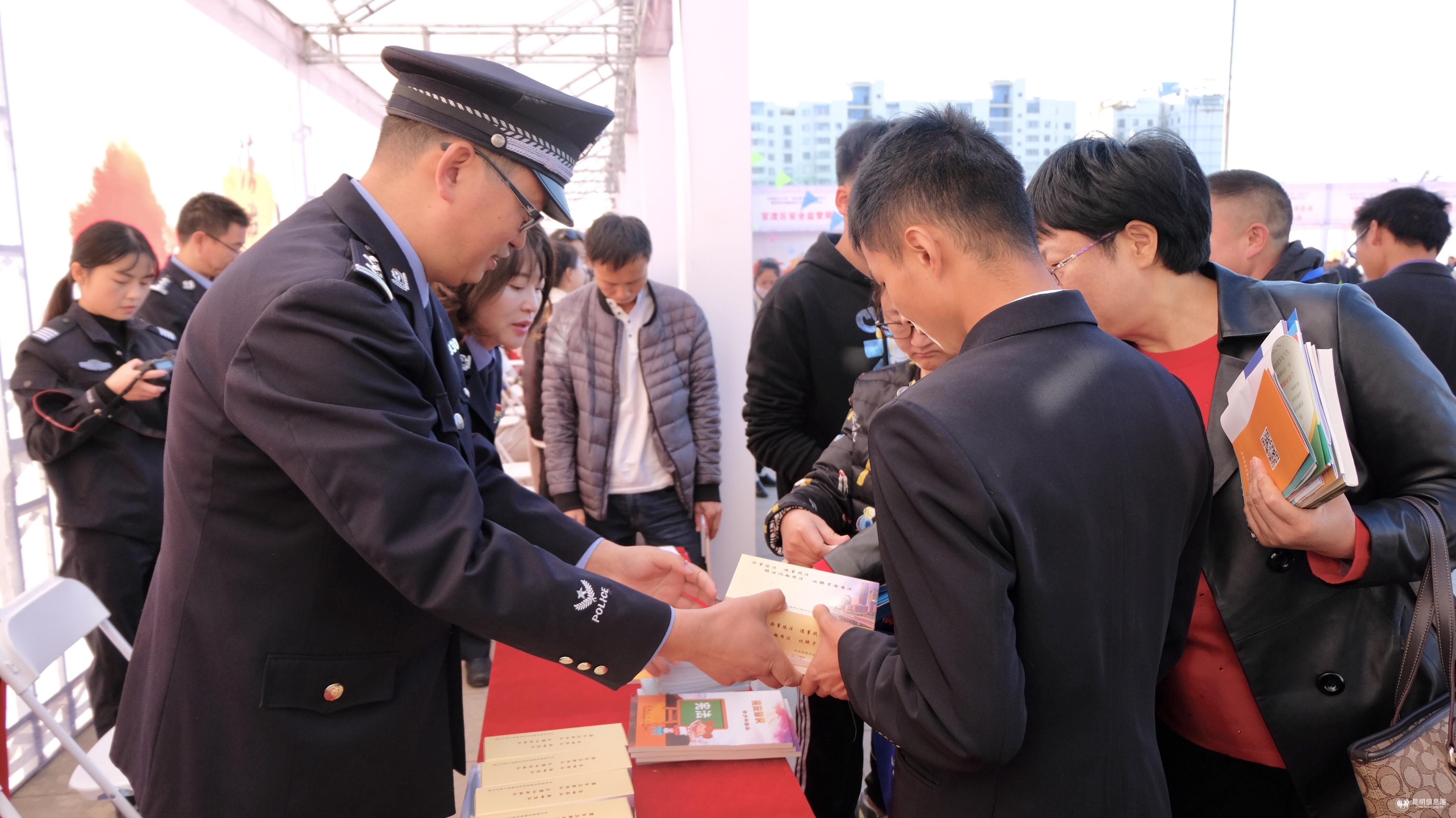 市公安厅工作人员向群众发放宣传资料。记者曹月/摄