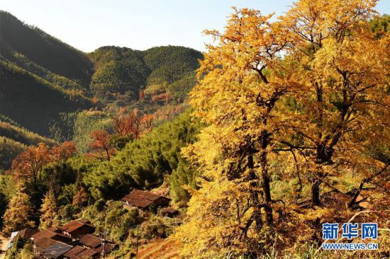 这是武夷山市吴屯乡的银杏树(11月28日摄)。 初冬时节,福建武夷山层林尽染,美不胜收。 新华社记者 张国俊/摄